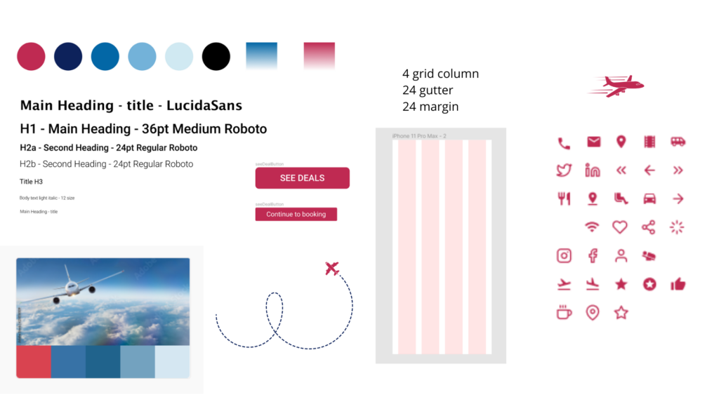 From business people to backpackers, I wanted to ensure my design was user-friendly for all types of users. My goal was to set a mood of culture and cleanliness while also not seeming overly expensive. In terms of colour, I selected the shades of the sky from royal blue to light blue shades and added pink as an accent colour.