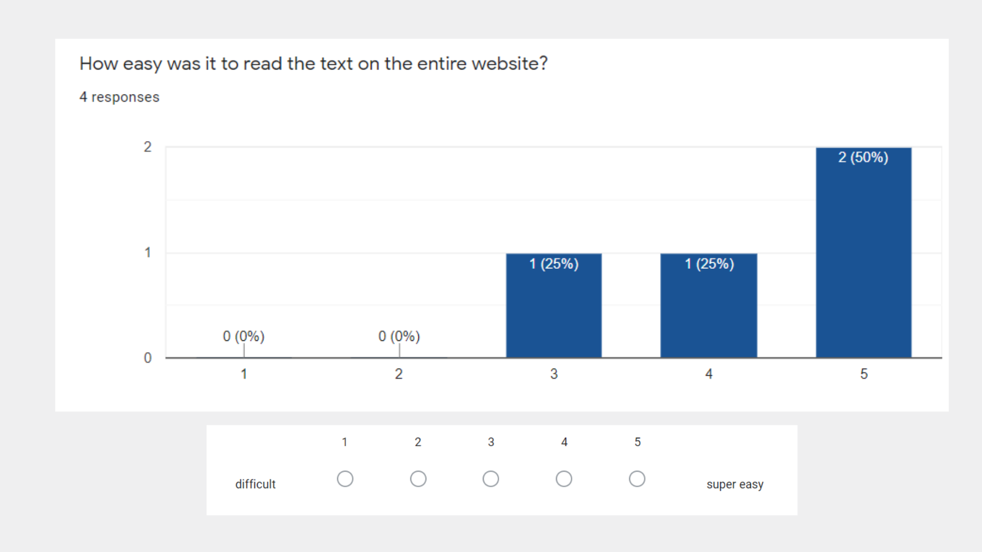 During the usability testing, I wanted to give freedom to my testers because of their busy schedules and unavailability at zoom meetings. Therefore, I used Google forms to collect detailed feedback and recommendations from respondents.