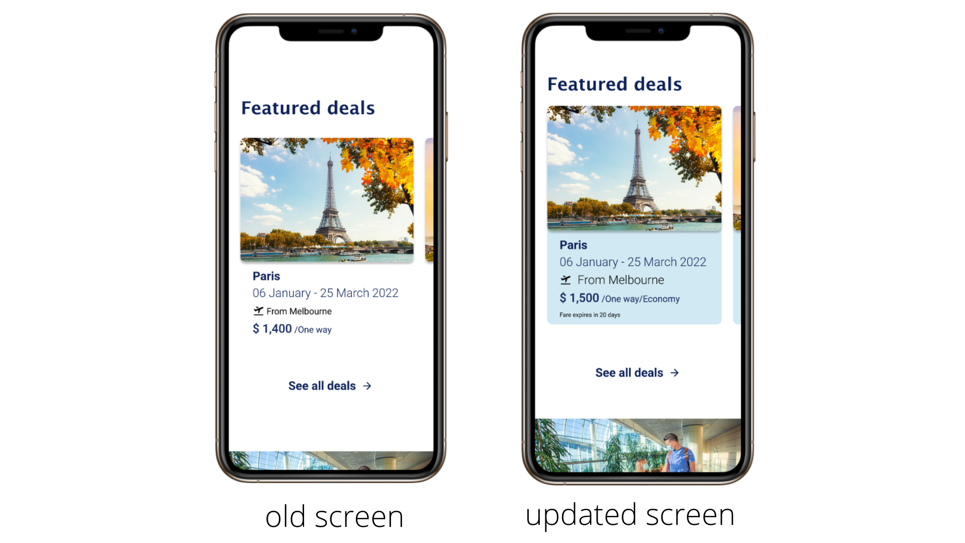 The information on the features deals was merged into the main content. For some users, it was hard to distinguish between the deals. Therefore, I placed an overlay background colour to each deal to make it separate.