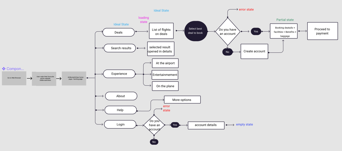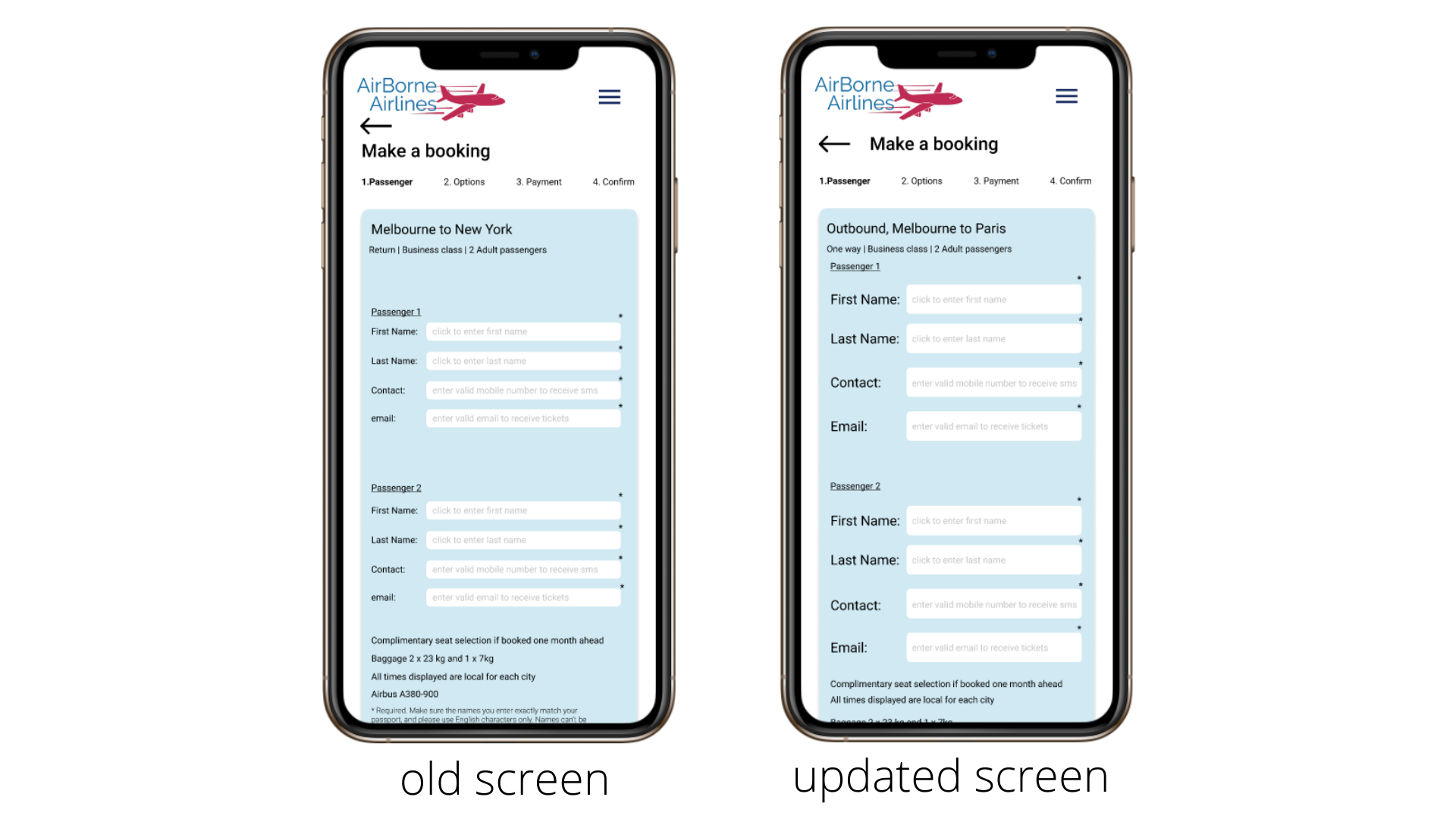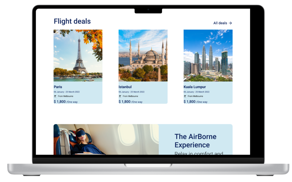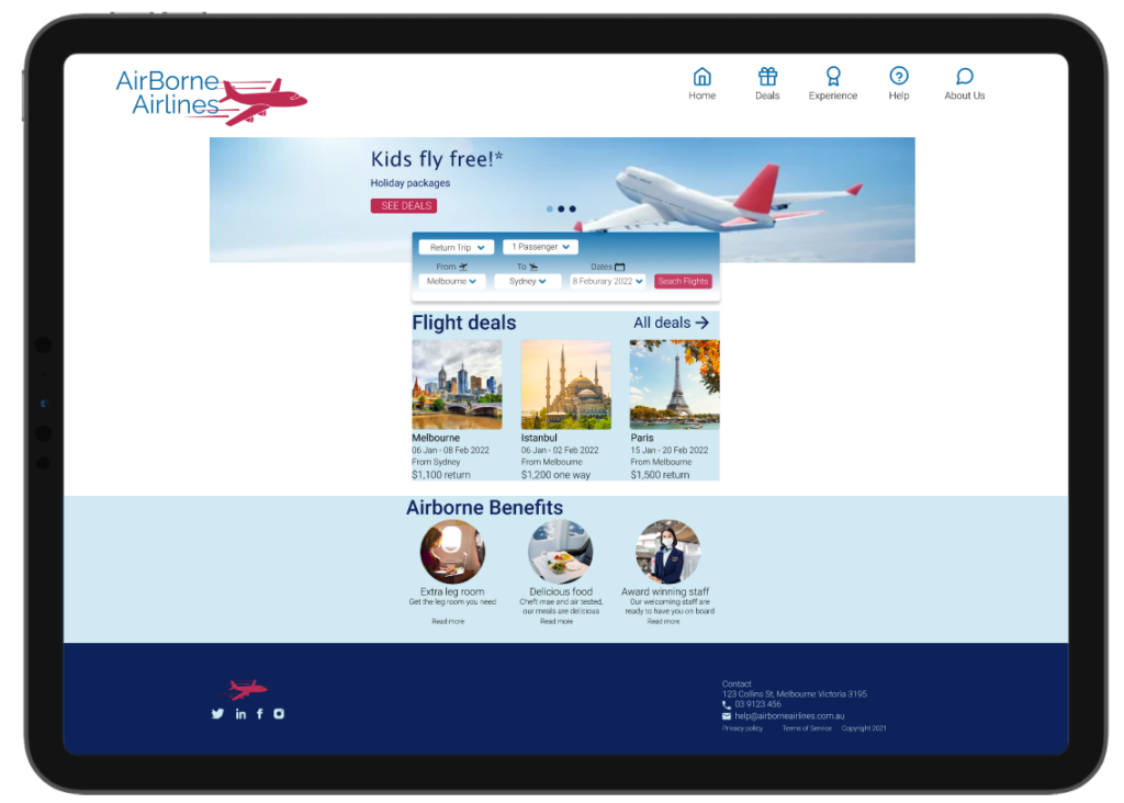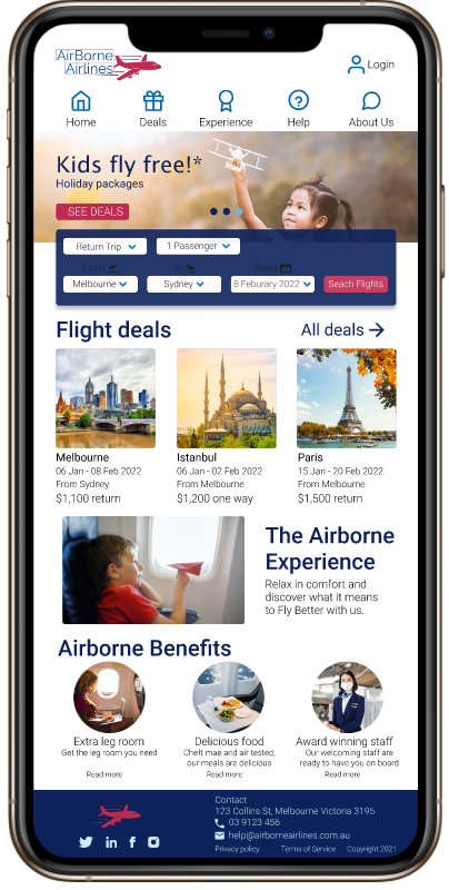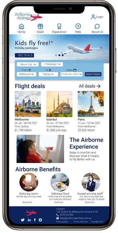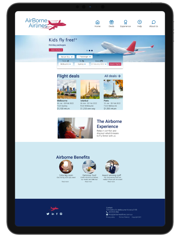 UX team have researched the market need for an airline and went through a series of desk research, user interviews, ideation, concept design and user testing. Now that the concept has been validated by research, the website is ready for its next iteration.