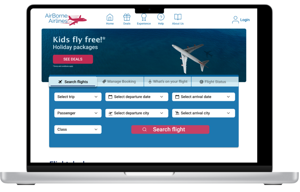 AirBorne Airlines is new to the market and looking to build a high fidelity responsive prototype that allows users to book an economical and comfortable flight experience and also to expand its online presence by introducing a mobile-friendly app. With the help of user research, usability testing, Ideation, high fidelity prototype and experimenting interface guidelines, I created MVP (minimum viable product) for ABA.